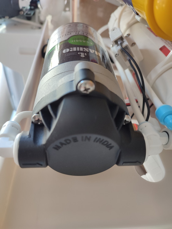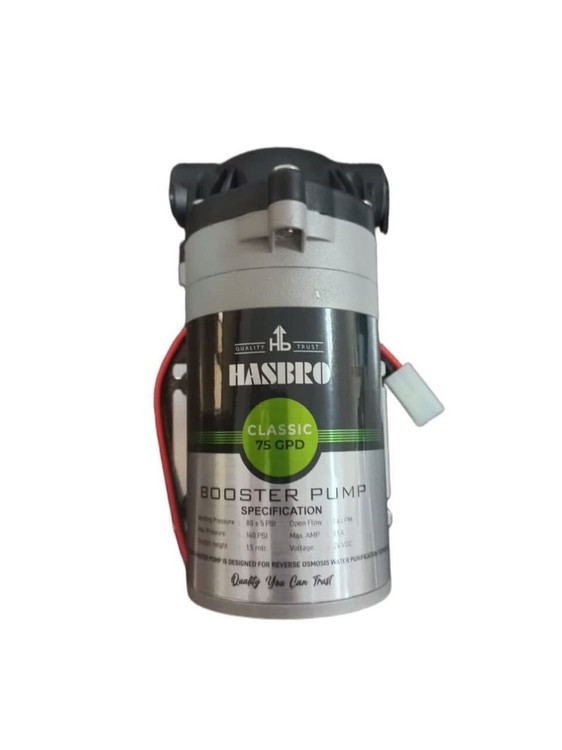 پمپ تصفیه آب برند هاسبرو مدل کلاسیک ساخت کشور هند سیم پیج مس کیفیت بسیار عالی کلکی و بلبرینگ های کیفیت مرغوب ایده آل فشار عالی ولتاژ 24 ولت 1.1 آمپر 75 گالن برای کلیه تصفیه های آب خانگی